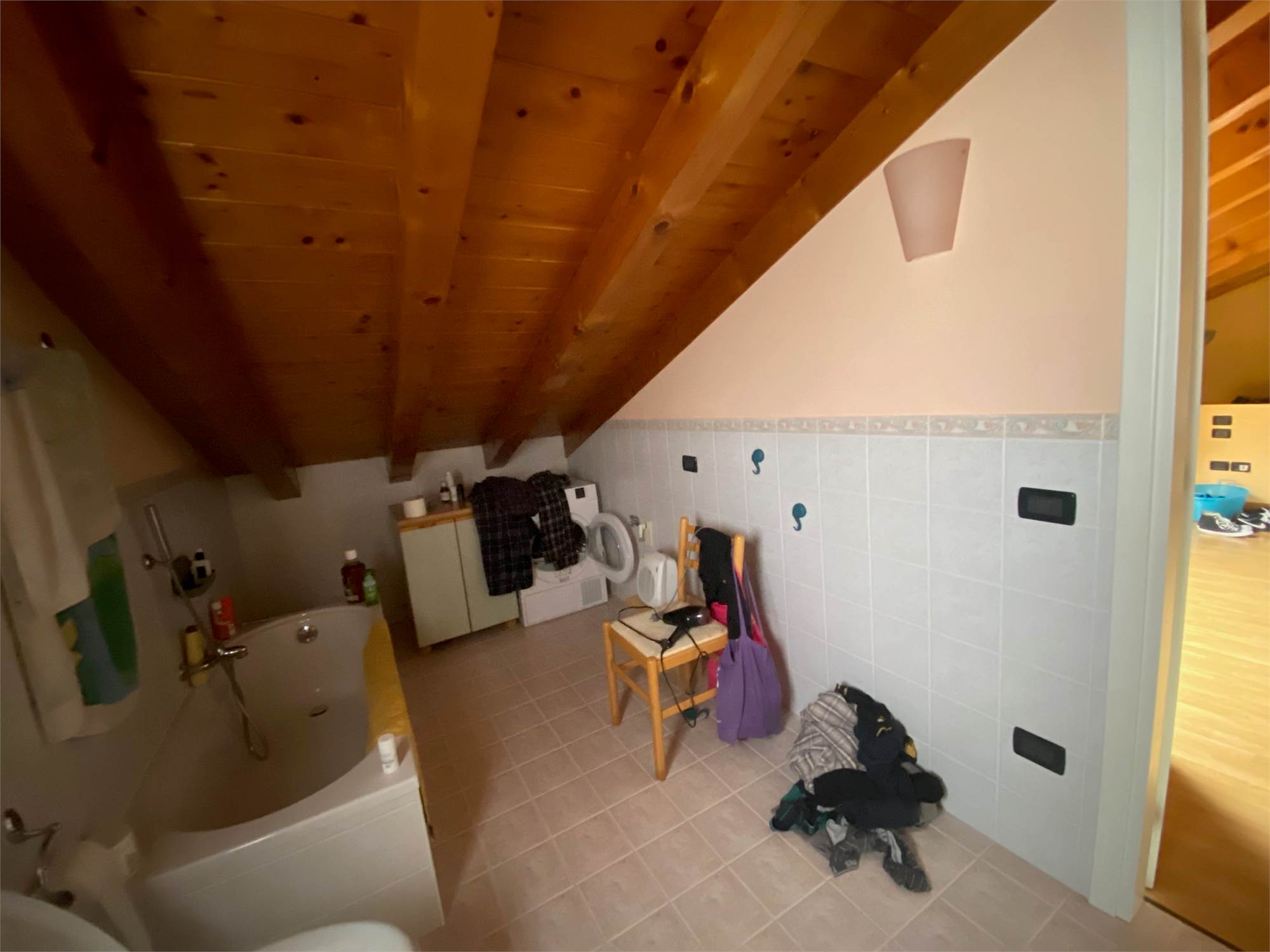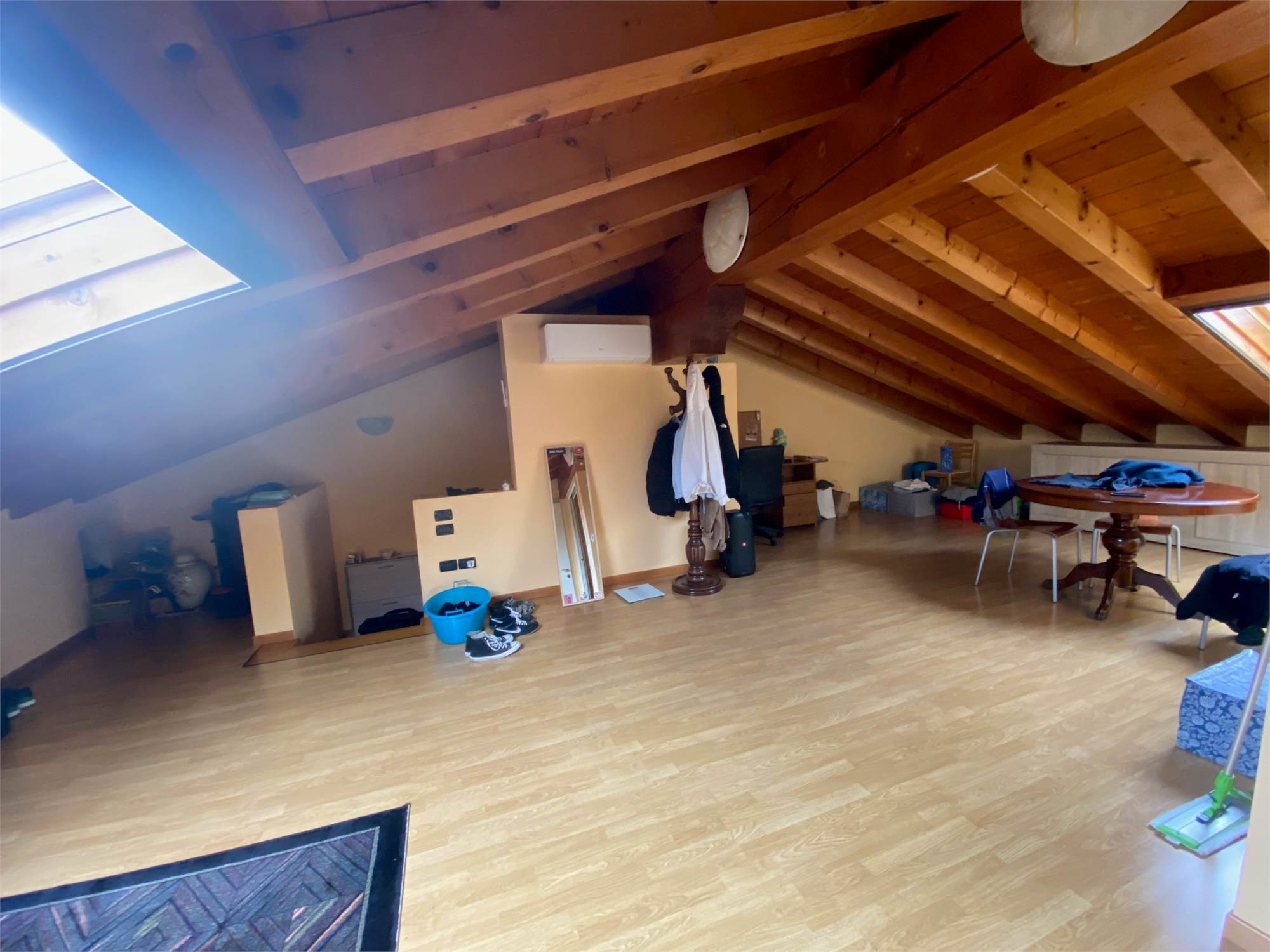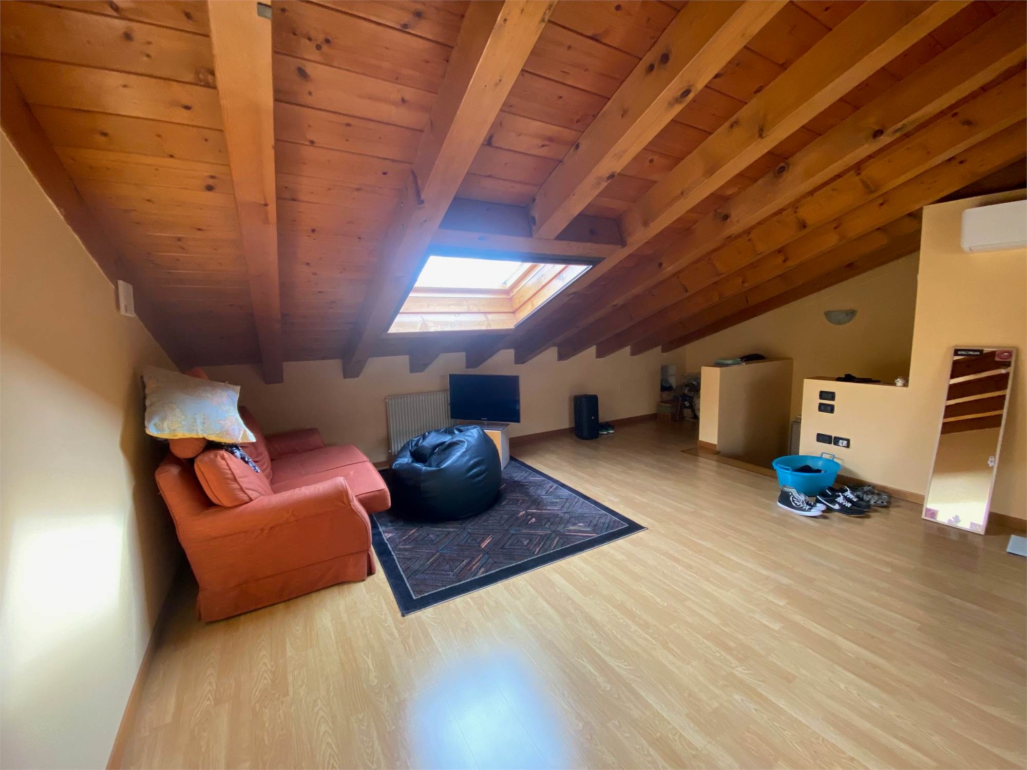 CASTAGNOLE di PAESE, zona residenziale tranquilla adiacente al centro, duplex travato a vista al primo ed ultimo piano, in contesto di sole quattro unità, composto da ingresso su soggiorno con terrazzino, cucina separata con terrazzino, disimpegno, camera matrimoniale con terrazzino, camera singola, bagno al primo livello, stanza mansardata con secondo bagno nel sottotetto, cantina di 17mq e garage doppio al piano interrato. Termogas autonomo, aria condizionata, possibilità di parziale arredo. Cl. B ipe 74. Euro 185.000 tratt.
