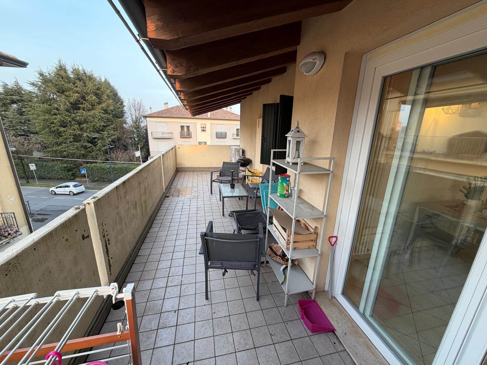 TREVISO zona Stiore, in contesto di sole 5 unità senza spese condominiali, appartamento travato a vista al secondo ed ultimo piano libero su tre lati, composto da soggiorno cottura con ampia terrazza abitabile, disimpegno, camera matrimoniale, camera singola, bagno, cantina e posto auto di proprietà. Termogas autonomo, aria condizionata con 2 split, possibilità di parziale arredo. Cl. D ipe 70. Euro 169.000 trattabili. Rif. 206 - STUDIO IMMOBILMARCA